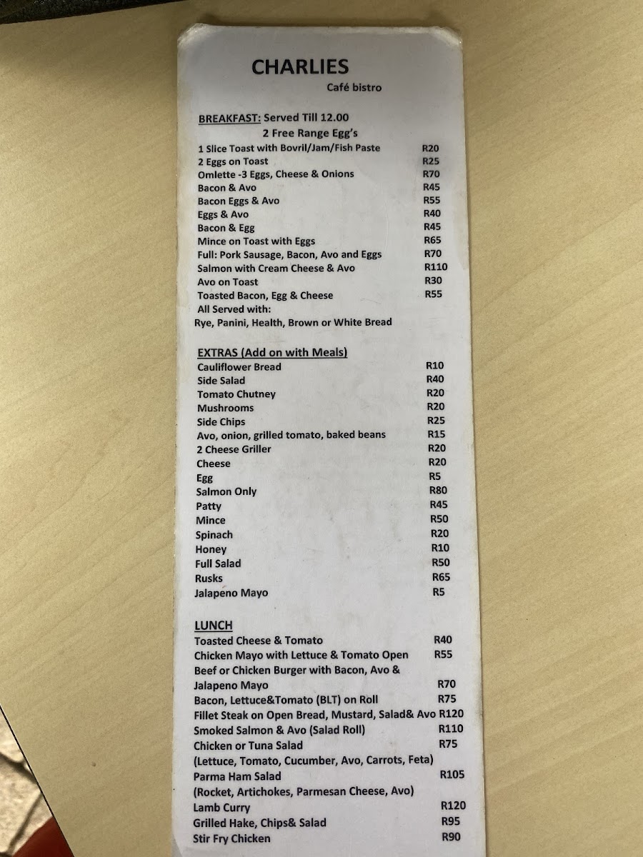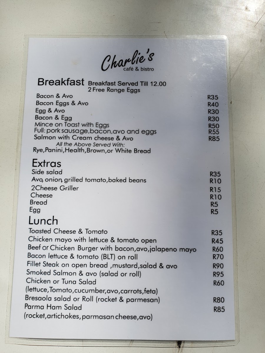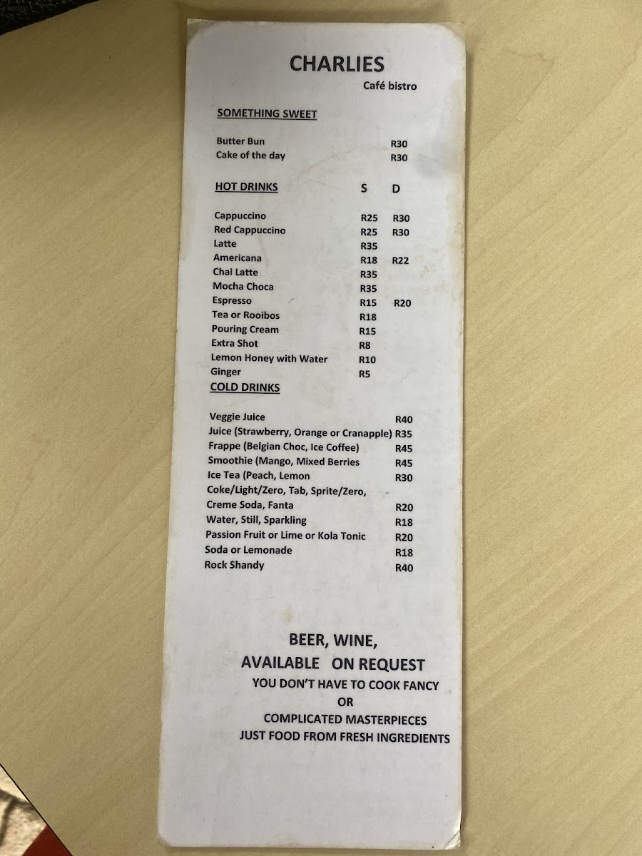 Charlie’s Coffee Shop offers a simple yet thoughtfully curated café menu, perfect for those seeking comforting bites and smooth, well-prepared drinks. It’s a place where the focus is on familiar, satisfying flavors ideally suited to start the day or enjoy a relaxed brunch. Whether you’re stopping in for a full breakfast or just a cappuccino, the menu caters well to mornings and late mornings when leisurely dining feels just right.
